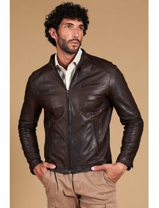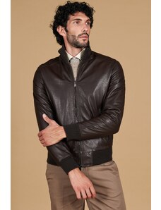 Giubbotto Bomber in pelle naturale testa di moro collo alto lana D'Arienzo