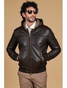 Giubbotto bomber in pelle testa di moro con cappuccio D'Arienzo