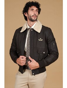 Giubbotto aviatore in pelle raggrinzita testa di moro collo montone D'Arienzo