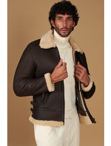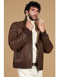 Montone shearling color testa di moro vintage modello bomber collo camicia D'Arienzo