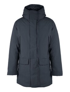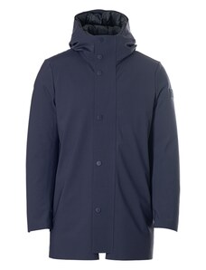 Save The Duck giubbotto blu navy uomo in tessuto tecnico lungo con cappuccio logo sul braccio