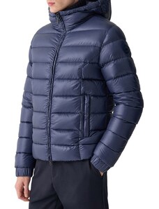 Save The Duck giubbotto blu navy uomo in tessuto tecnico con cappuccio logo sul braccio