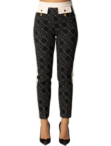 ELISABETTA FRANCHI PANTALONE BI COLOR IN DOPPIO CREPE CON STAMPA