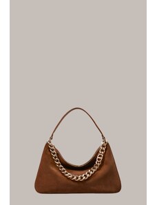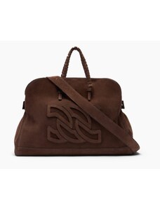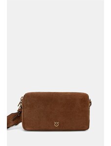 PINKO Clutch marrone in pelle scamosciata con tracolla