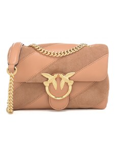 Pinko borsa puff a tracolla da donna in vera pelle con inserti trasversali a contrasto in suede rosa toast