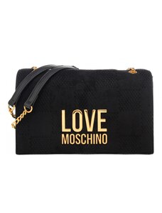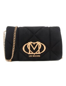 Moschino borsa a tracolla da donna in suede con effetto trapuntato geometrico e logo in metallo sul davanti nera