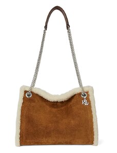 Moschino shopping bag da donna in suede con maxi logo lettering in metallo sul davanti ruggine
