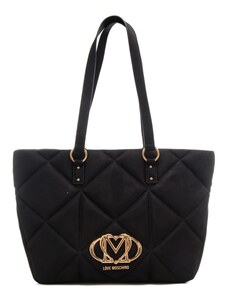 Moschino borsa a spalla grande da donna in suede con effetto trapuntato geometrico e logo in metallo sul davanti nera