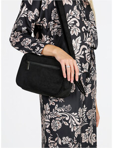 Moschino borsa a tracolla da donna in suede con maxi logo lettering in metallo nera