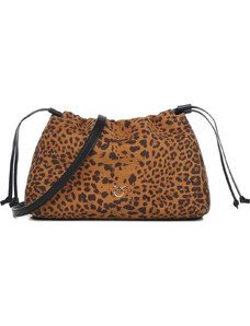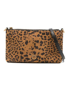 PINKO Clutch marrone con stampa leopardata e chiusura a coulisse