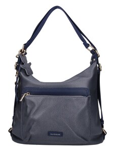 Borsa zaino donna MONTE ARGENTERA in vera pelle tamponata, colore BLU SCURO, CHIAROSCURO, Made in Italy