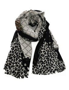 Liu Jo sciarpa da donna in misto viscosa con stampa a fantasia animalier, catene e logo nera