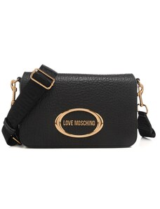 Moschino borsa a tracolla da donna in pelle bottalata con dettaglio ovale con logo lettering sul davanti nera