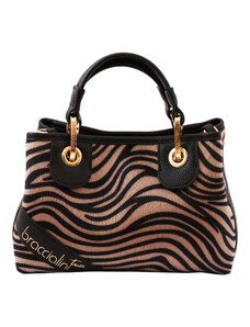 Pollini borsa a spalla da donna con unico manico in tessuto regolabile nero marrone
