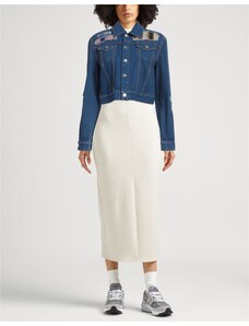 Denim trucker Denim Tessuto elasticizzato Finiture in maglia Tinta unita Lavaggio scuro Collo alto Maniche lunghe Polsini con bottoni Interno removibile Chiusura con bottoni Multitasche Lavare a secco Non candeggiare Non asciugare in asciugatrice