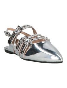 Scarpa ballerina donna Corina M4572 in pelle morbida semilucida argento a punta con cinturino regolabile suola sottile