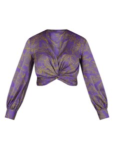 SIMONA CORSELLINI Blusa crop viola a fantasia con nodo raso