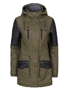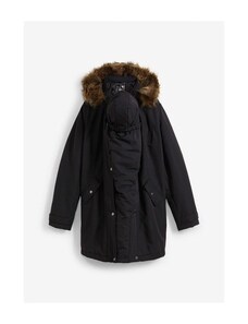 bonprix Parka lungo con similpelle, Nero, similpelle