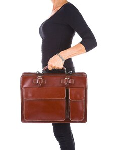 Cartella ufficio / lavoro in vera pelle CHIAROSCURO mod. ALEX XXL, colore MARRONE, con tracolla, Made in Italy adatta a computer Pc portatile 13/14 pollici, brochure grandi, cartelle