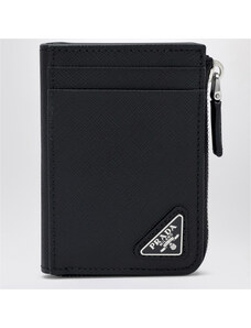 Prada Portacarte con zip nero in Saffiano