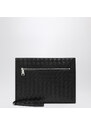 Portadocumenti di Bottega Veneta in Intrecciato nero, caratterizzato da chiusura con zip su tre lati, vari slot porta carte interni, hardware in metallo color argento e cinturino da polso.