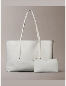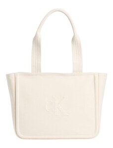 Calvin Klein borsa crema donna in ecopelle shopping logo in rilievo