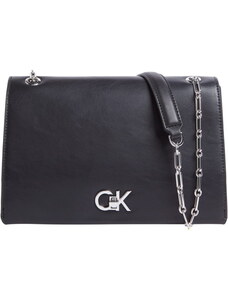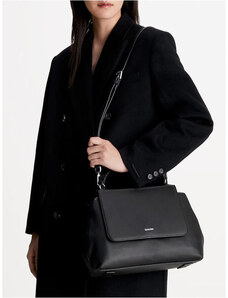 Calvin Klein borsa nera donna in ecopelle liscia con tracolla logo in metallo