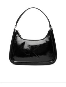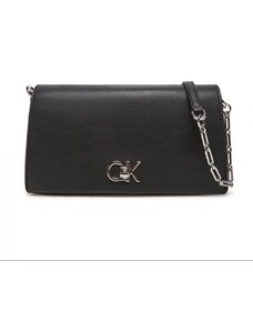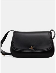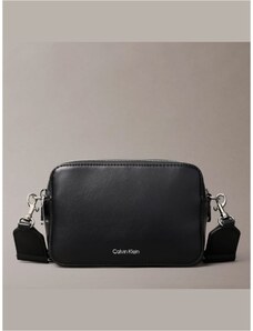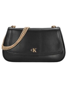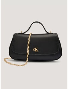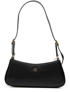 Calvin Klein borsa nera donna in ecopelle liscia con tracolla mini logo in metallo