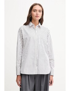 Emme Marella CAMICIA SMANICATA IN POPELINE A RIGHE E TWILL BIANCO