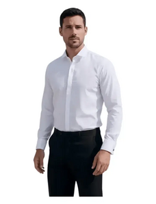 Camicia slim fit bianca con colletto diviso e polsini da moschettiere Uomo Yves Enzo Paris