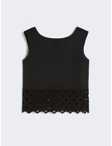 Max Mara Donna - Top in popeline e pizzo macramé - Nero - Taglia XS