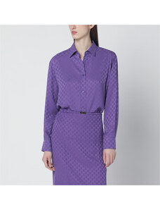 GUCCI Camicia oversize viola in seta jacquard GG