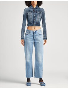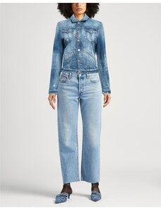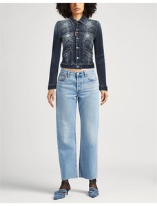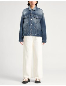Denim trucker Denim Effetto consumato Brand logo Cristalli Tinta unita con applicazioni Lavaggio chiaro Collo classico Monopetto Maniche lunghe Interno sfoderato Chiusura con bottoni Taschino doppio Elasticizzato Lavare presso lavanderie specializzate o a secco Non candeggiare Non asciugare in asciugatrice Non stirare