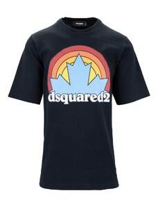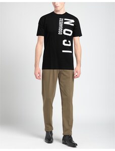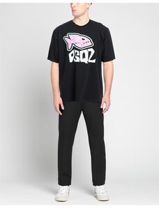 T-Shirt Uomo T-Shirt da uomo firmata Dsquared2. Tessuto primario e secondario realizzati 100% in cotone. T-shirt girocollo a maniche corte. Presenta scritta brand sul davanti ad altezza petto, realizzata e stampata con colore a contrasto. Spacchi laterali sulla parte inferiore del capo.... Nero Cotone