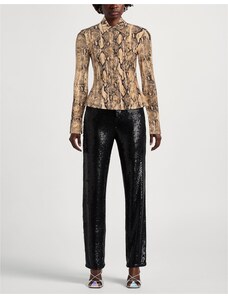 Camicia maniche lunghe in georgette stampa animalier Vestibilità regolare Colore nero Composizione tessuto 100% viscosa Capo indossato taglia 40 Modella altezza 1,80 cm taglia 40