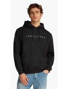 Tommy Jeans felpa nera uomo in cotone con cappuccio logo sul davanti