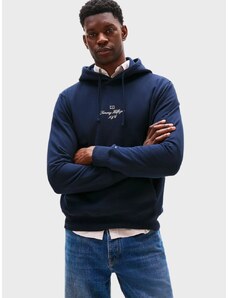 Tommy Hilfiger felpa blu navy uomo in cotone con cappuccio logo lettering sul davanti