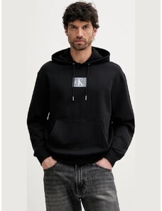 Calvin Klein felpa nera uomo in cotone con cappuccio patch logo sul davanti