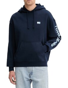 Tommy Jeans felpa blu navy uomo in cotone con cappuccio maxi logo sul braccio