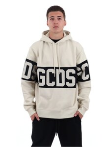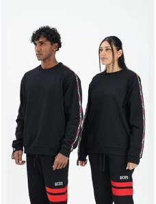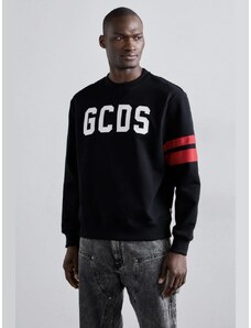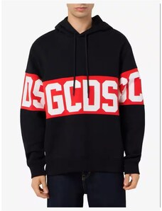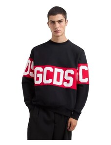 Gcds felpa nera uomo unisex girocollo in cotone bande con logo
