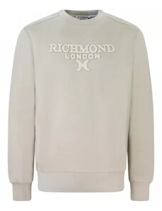 Richmond felpa beige uomo in cotone girocollo maxi logo sul davanti