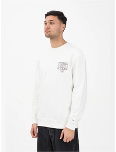 Tommy Hilfiger felpa bianca uomo in cotone con cappuccio logo lettering sul davanti