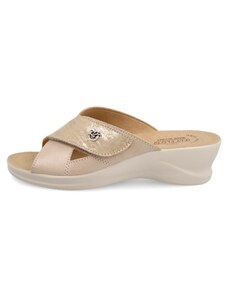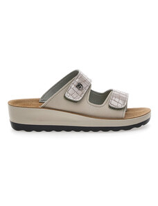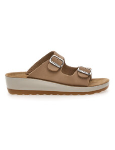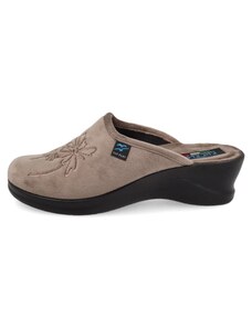 Pantofole taupe con plantare forato e zeppa comfort Fly Flot 90L80X68PE