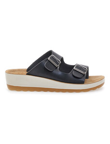 Ciabatte blu a punta aperta con sottopiede in pelle Fly Flot T4429FE