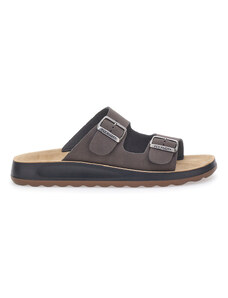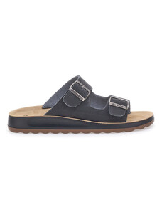 Ciabatte nere con doppia fibbia e sottopiede in pelle Fly Flot 77G642C