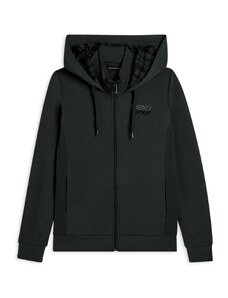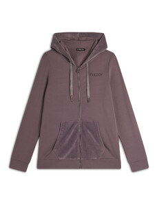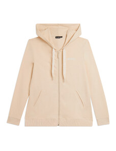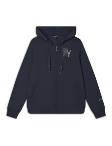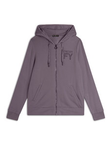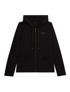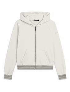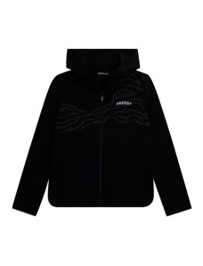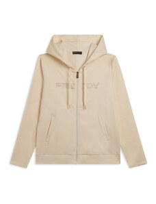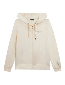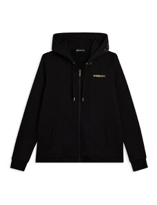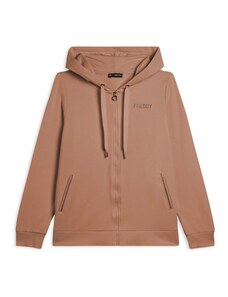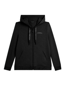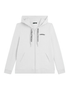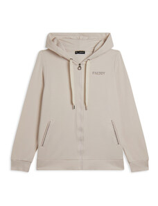 Felpa comfort fit in tessuto di poliestere stretch effetto seta, ideale per un look versatile e chic. Con lunghezza cropped e elastico interno sul fondo, presenta chiusura con zip, cappuccio e maniche lunghe con elastico sui polsi. Le tasche anteriori a filetto e il piccolo logo FREDDY oro chiaro sul cuore aggiungono funzionalità e stile.