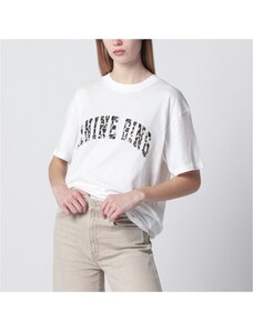 ANINE BING T-shirt avorio con logo leopardato