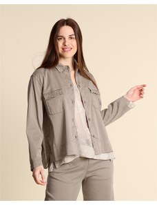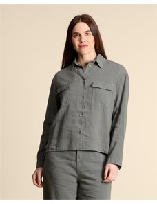 Solada Giacca Oversize Da Donna In Misto Cotone e Lino - Militare Leggere Verde Taglia L