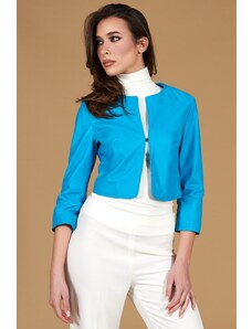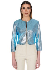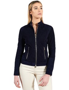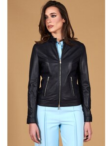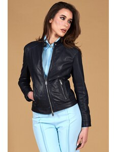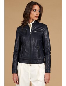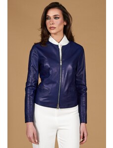 Giacca in pelle naturale bluette girocollo effetto liscio D'Arienzo