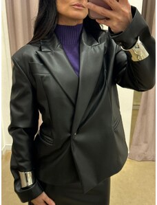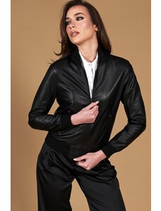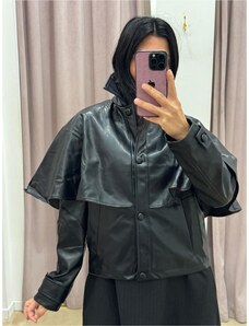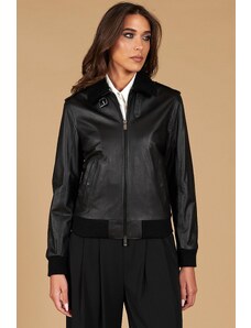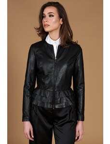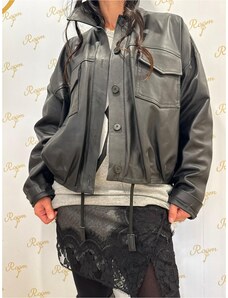 Giacca in pelle nera con balze nappa effetto liscio D'Arienzo